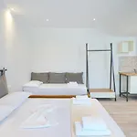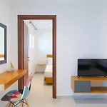 The rooms at the Villa Lithi Limenaria include an air conditioner, as well as media facilities like a flat-screen TV with satellite channels. They offer a fridge, a stove top, and kitchenware.